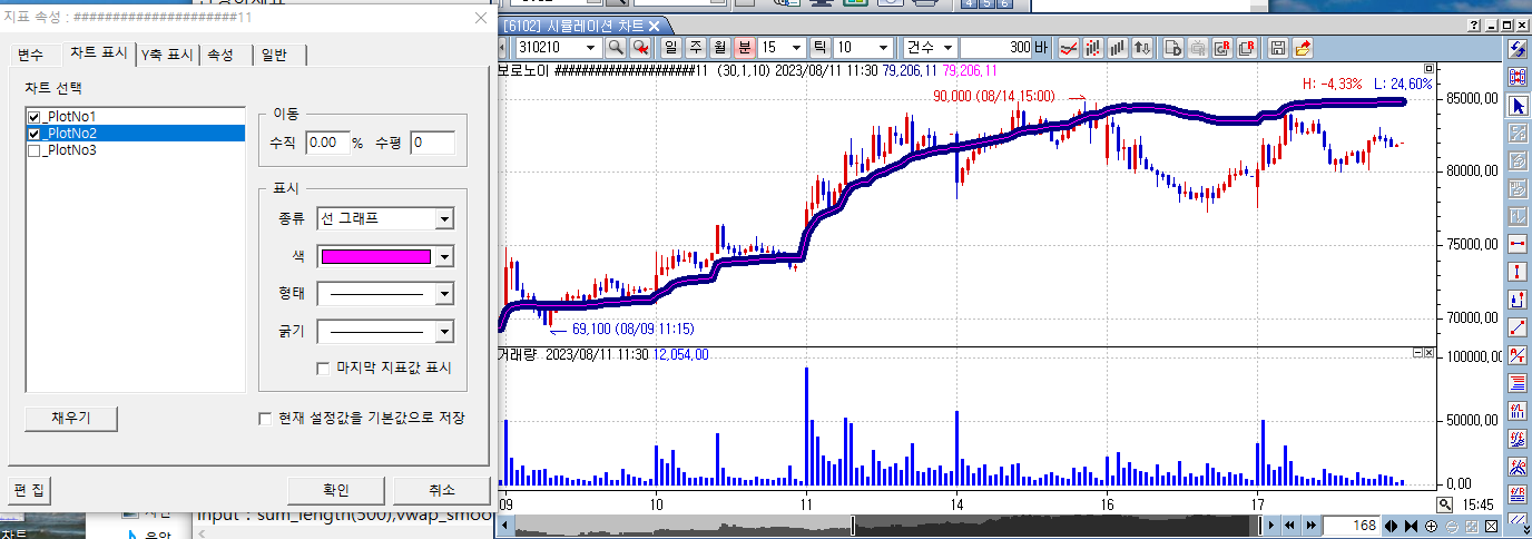 plot2가 기간(vwap_smoothing)이 1이라 plot1과 같은값입니다.