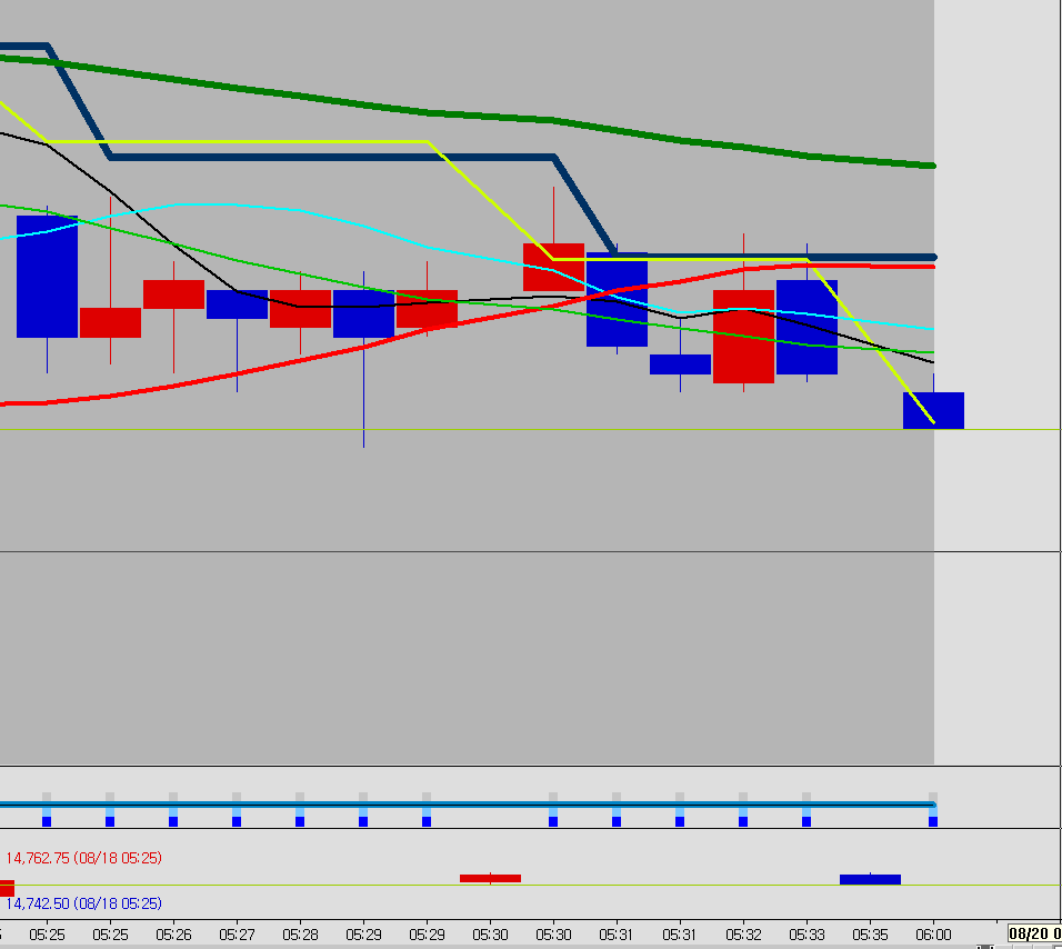 참조차트 5분봉의 1봉전 5이평이랑 지표로 가로선으로 표시한 선입니다.