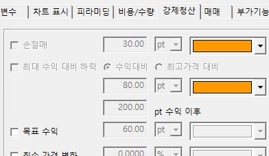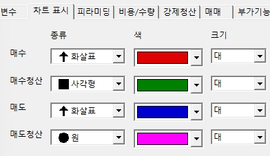 강제청산탭에서 설정하거나 모두 강제청산탭에서 지정한 색상으로만 표시가 됩니다.
