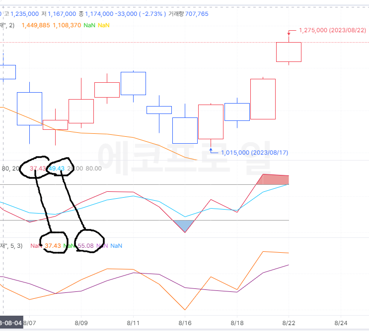 > 제목 : 스토캐스틱 지표값이 다르게 나옵니다.