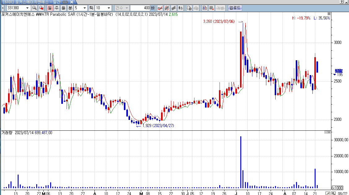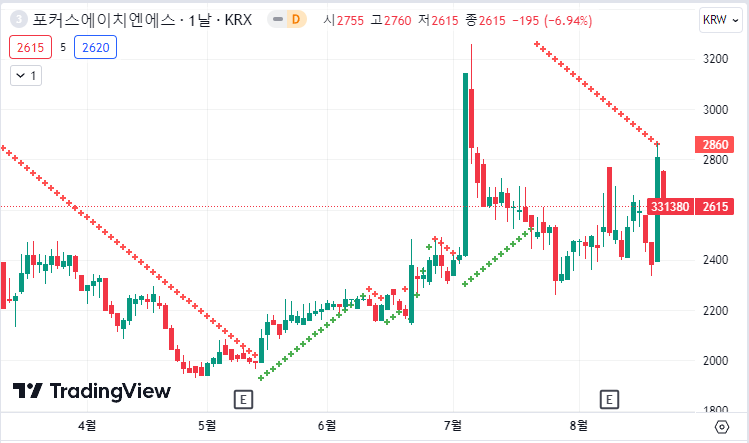 plot1(psar,"psav",iff(trend_dir == 1 , green , red));