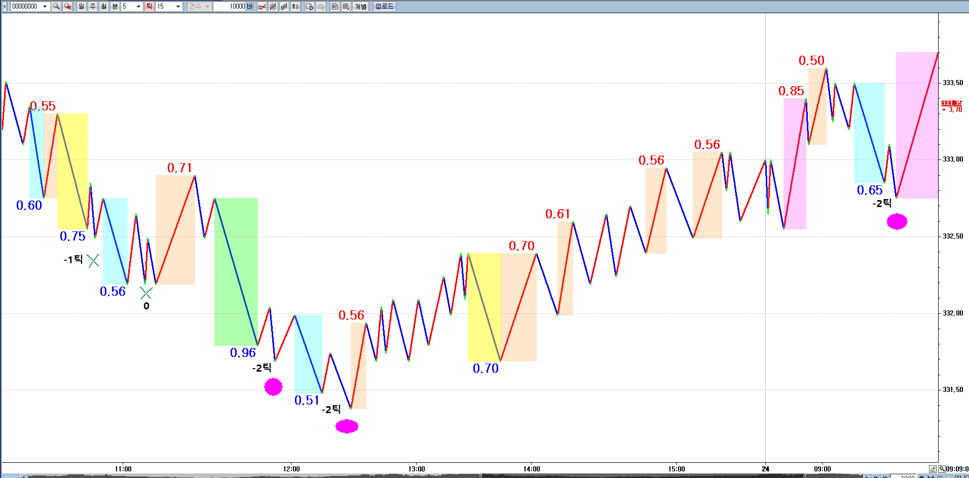 (-2틱 쌍바닥은 직전 하락추세선의 크기가 0.5p 이상일 때만 해당)
