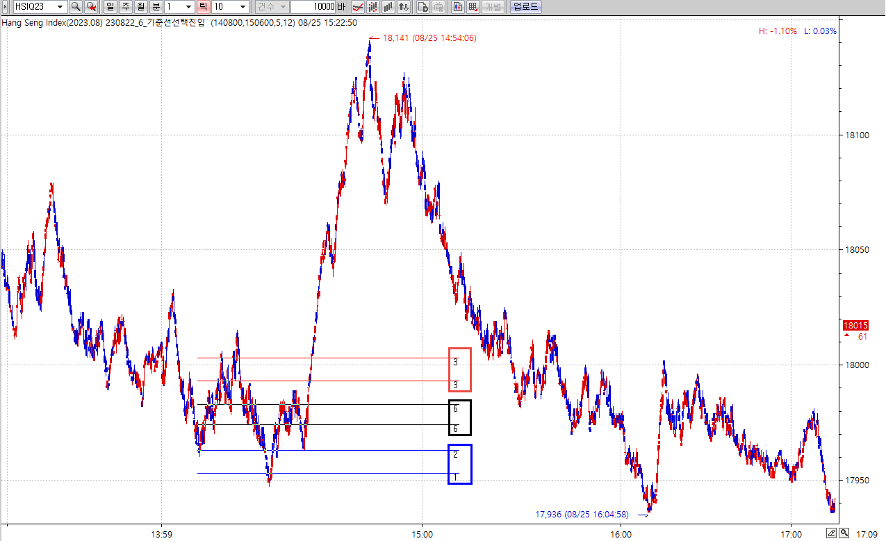 그리고 빨간색 박스권 그룹, 파란색 박스권 그룹에서는 진입 기능이 정지가 되어야 합니다.