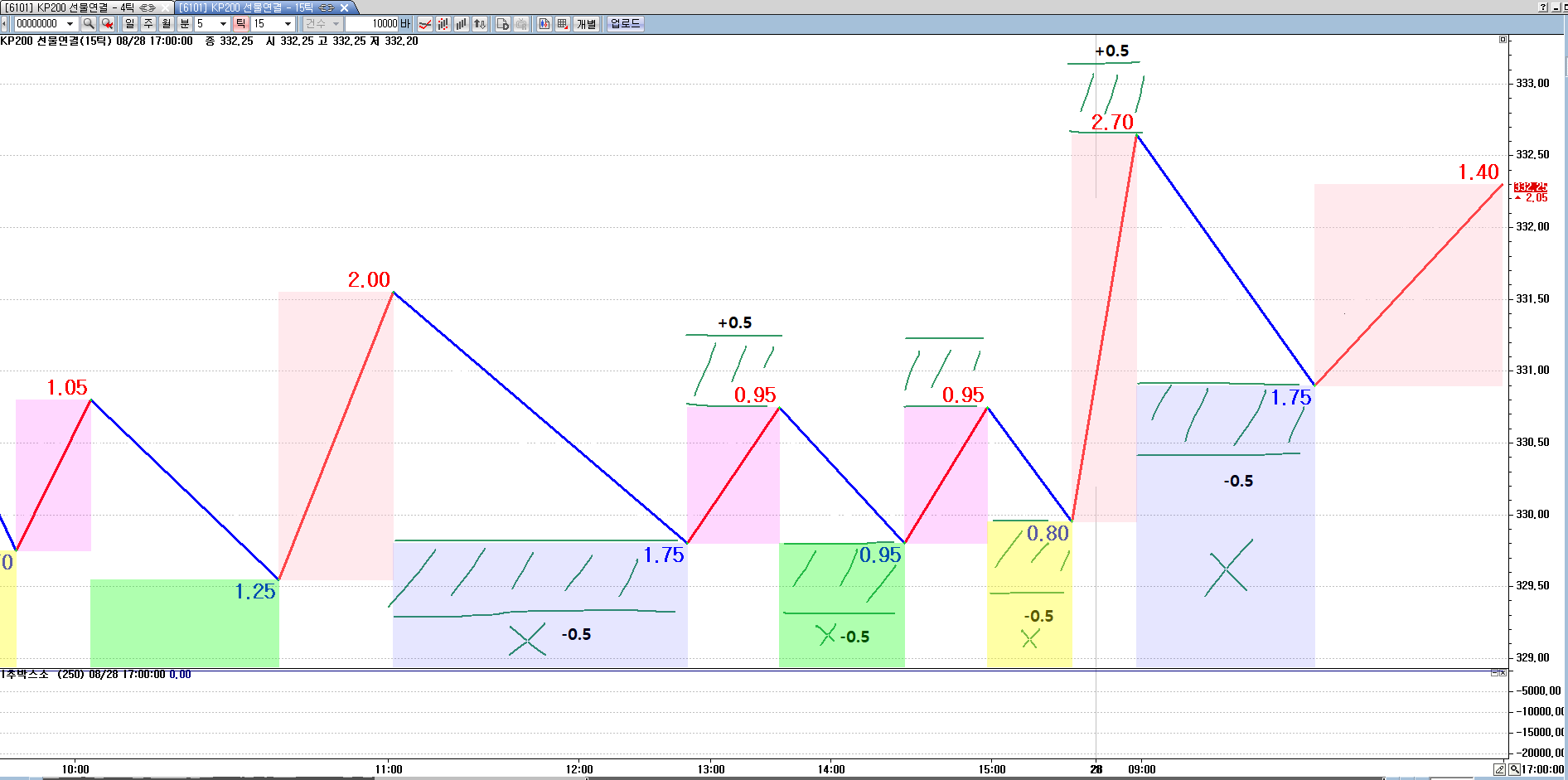 안되면 상승 박스를 현재 하락 박스같이, 상승 박스 하단은 상승추세선 상단, 상승 박스 상단은 차트 상단으로 올려주세요. 하락은 내렸는데 상승은 안올라가네요. 감사합니다.