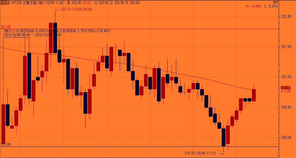 금일장 개장후 3분봉상 7개봉의 저점은 8시 48분 완성봉의 저점 319.85 = var1