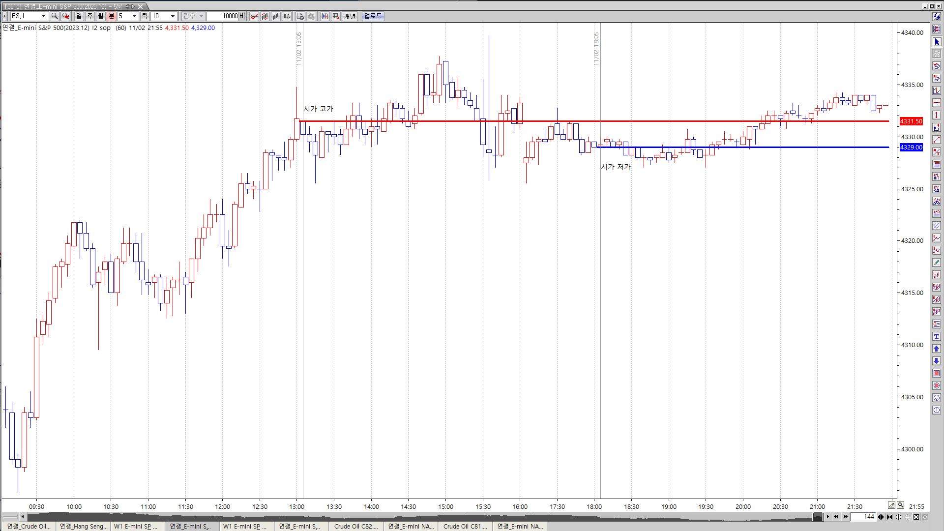 > 답변해 주신 수식으로 적용 하였으나, 항셍에서 매시의 시가고가 시가저가가
