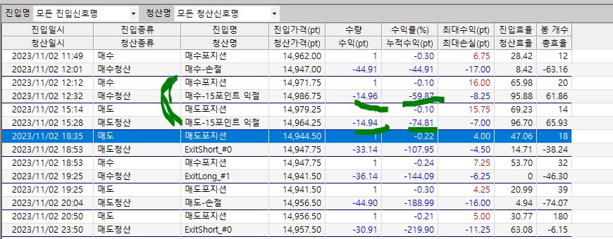 ExitShort("매도-15포인트 익절",AtLimit,AvgEntryPrice-15);