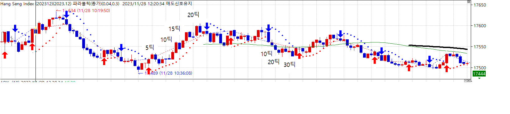 > 파라볼릭(종가)로 시스템 매매 차트를 보고 있습니다.