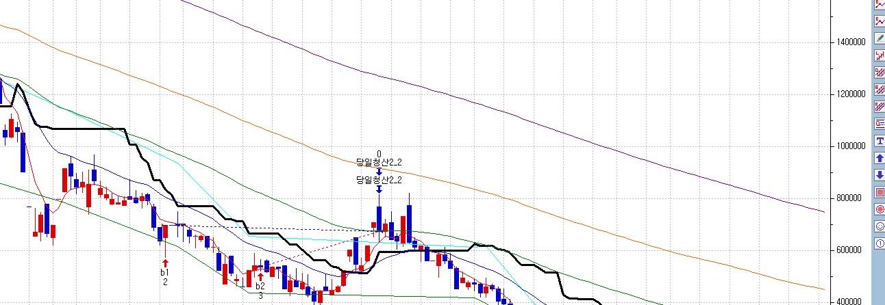3) 시가가 직전 매수 금액 대비 1,000원(한 구간) 이내 하락이고 종가가 많이 빠지는 경우에는 당일에 각 구간 하락 시 마다 매수 가능.
