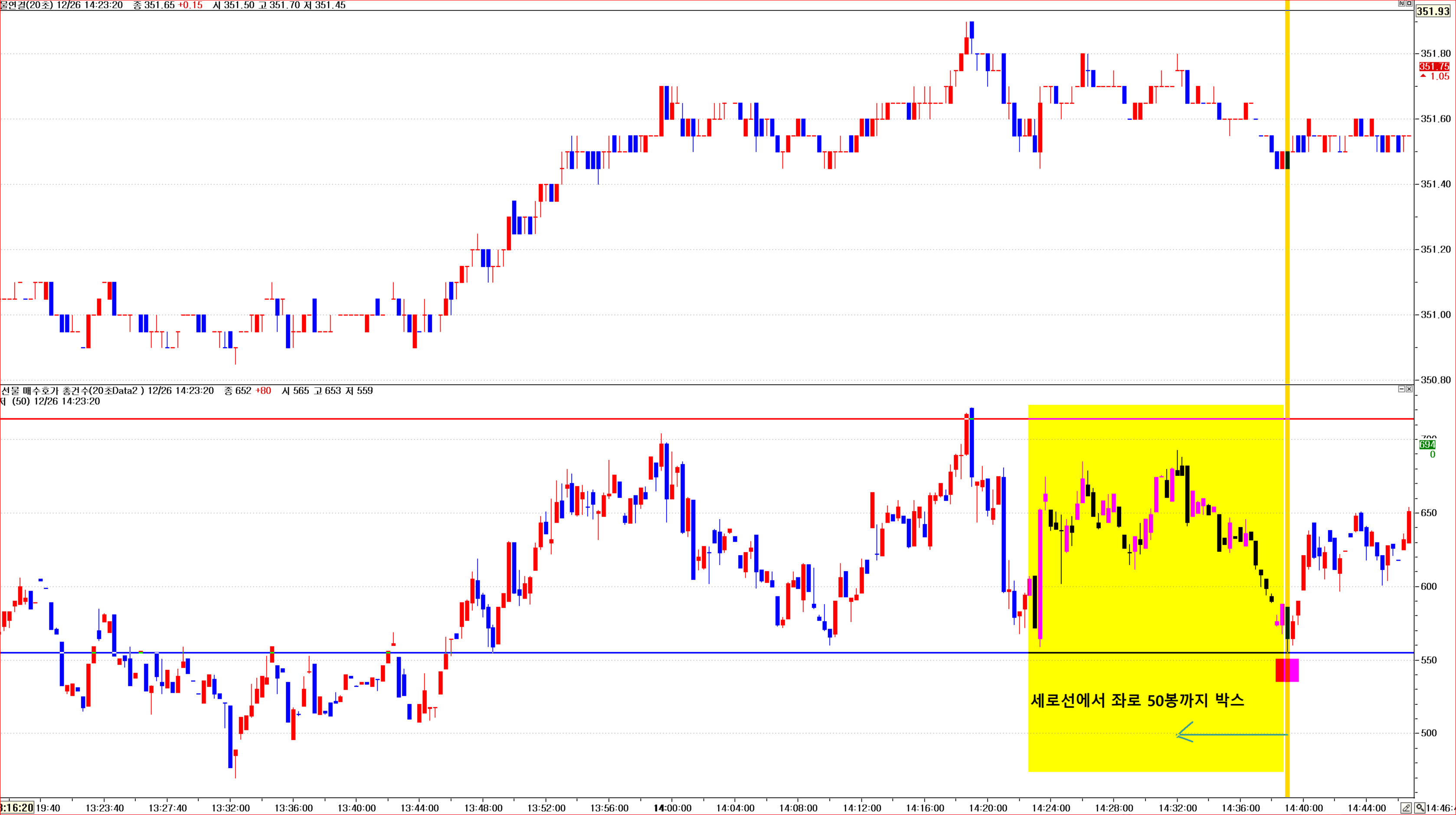 data2의 최근 50봉 중에서 최저가에 표시되는 세로선을 기준으로, 좌측으로 50봉까지 세로선의 변화에 따라가며 전체박스. 감사합니다.