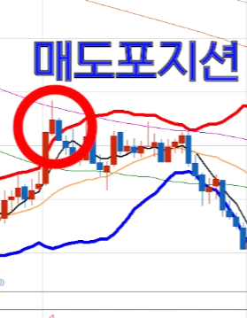 rsi 과매수(1번사진) 거나 볼린자 밴드 상단이탈시 (2번사진)