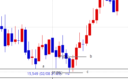 다음 캔들의 전저점 c를 하향돌파 하거나 고점b를 돌파하지 못하면 아무 신호도 내지 마라