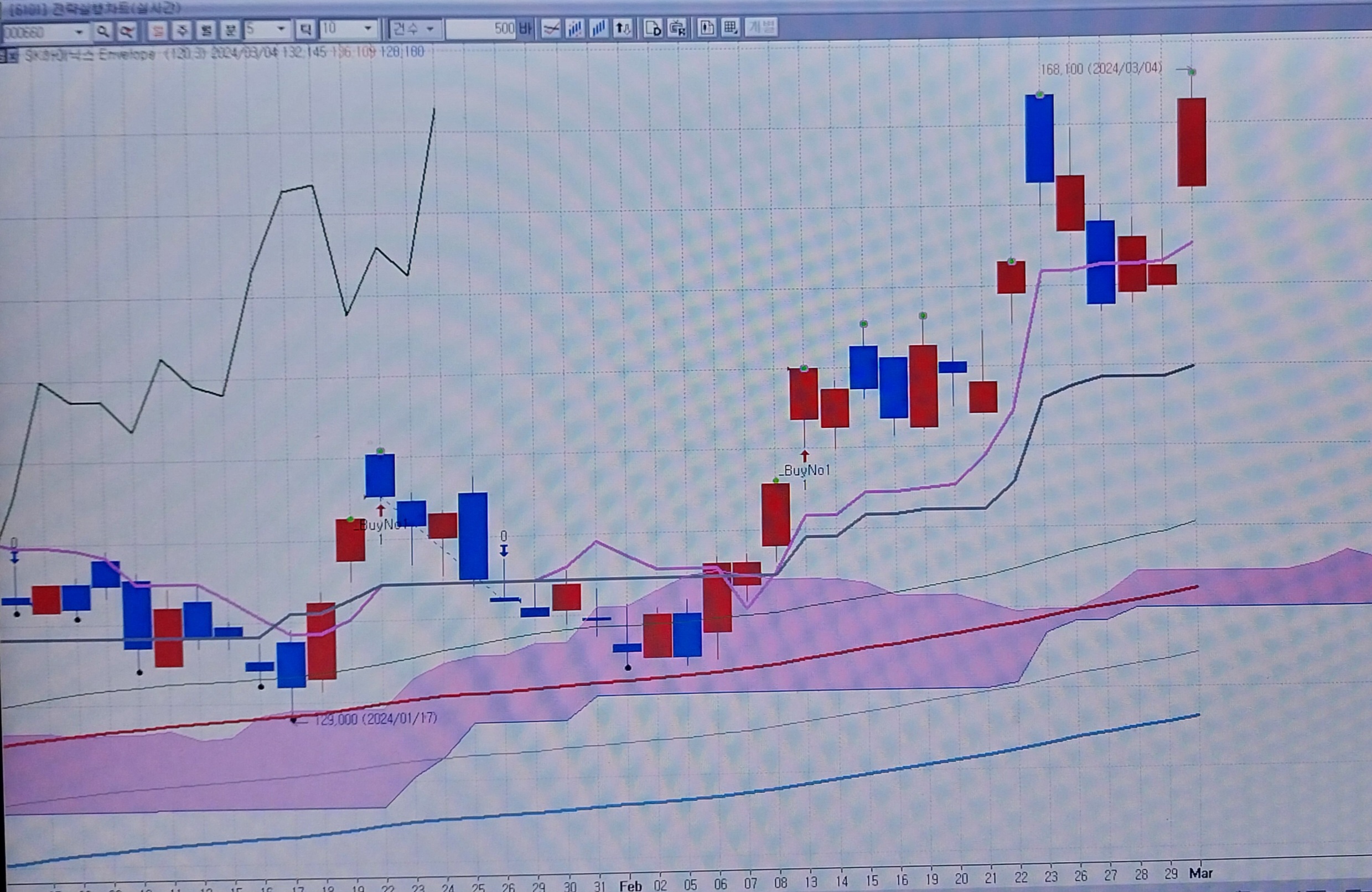 차트도 500봉 조회해 비교해 보시면 됩니다.