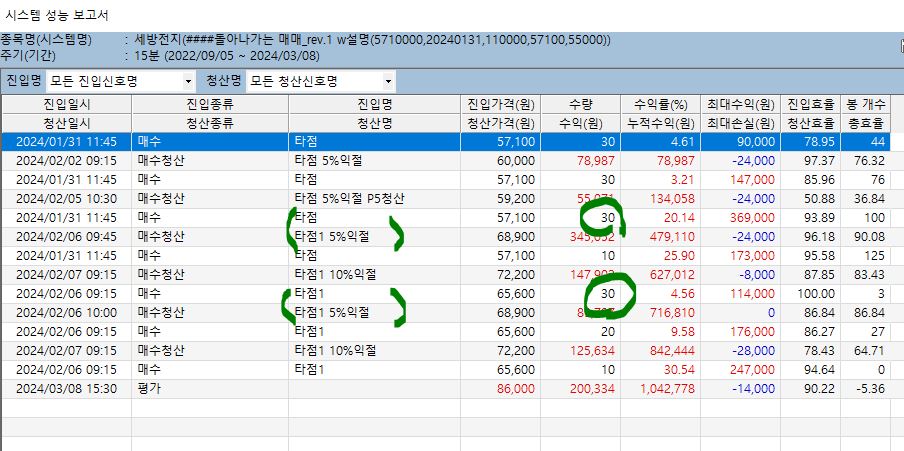 타점에서 진입된 수량이 30주가 안되면 다음진입신호에서 나머지수량이 차감되게 됩니다.