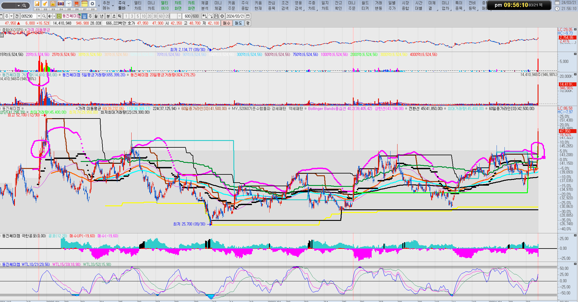 현재봉의 거래량은 상관없습니다.그리고 거래량200위와 거래대금 200위 안에서 1봉전 5평균거래량이 10만 이상입니다