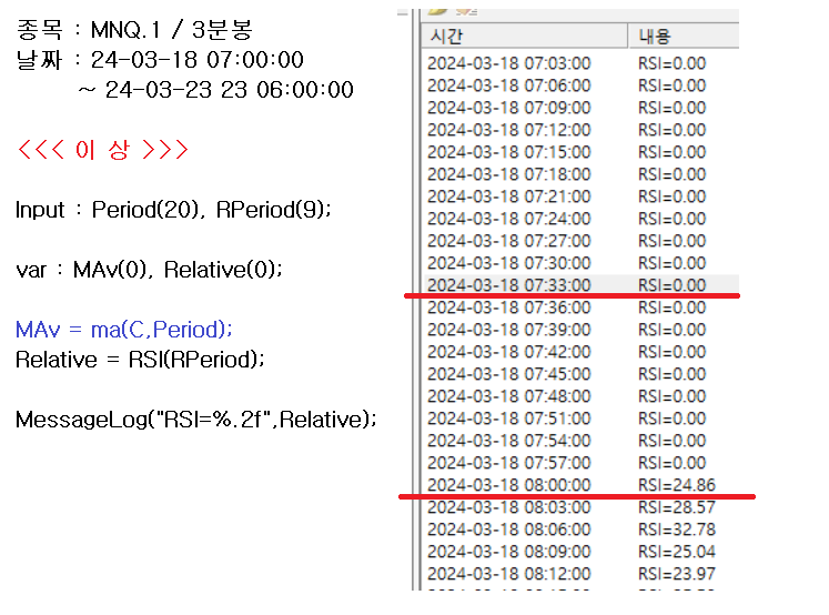 ===> 07:33 봉 부터 정상적인 RSI 값 출력
