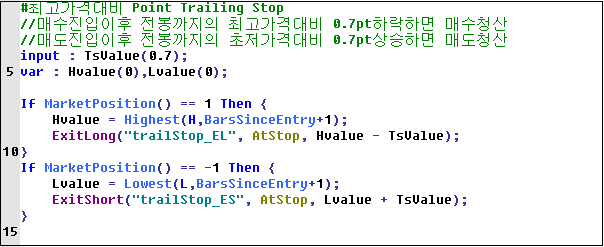 10포인트 수익후에 고점대비 0.7포인트 하락시 청산 한다고 할때