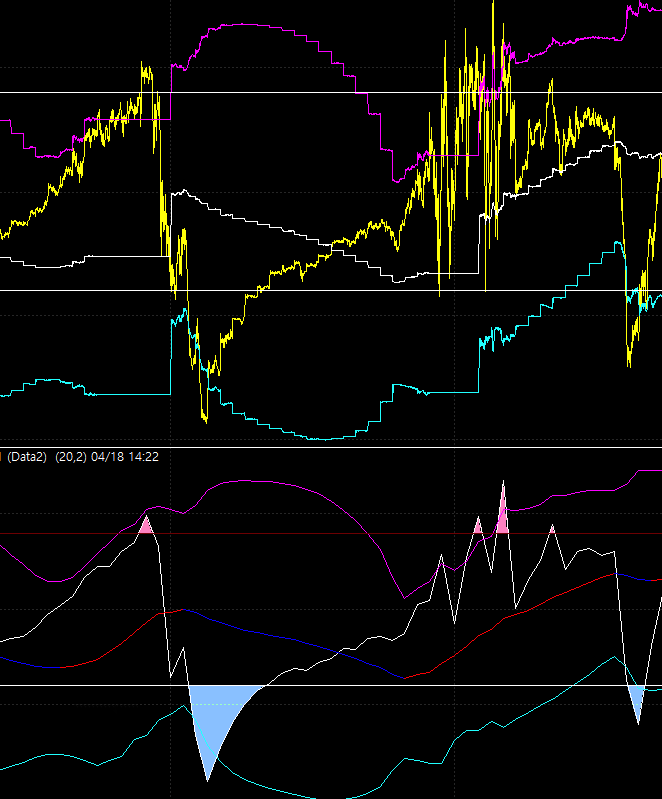 기본종목 1분봉 자체로 60분봉의 볼밴값을 계산해서 그린 지표입니다.