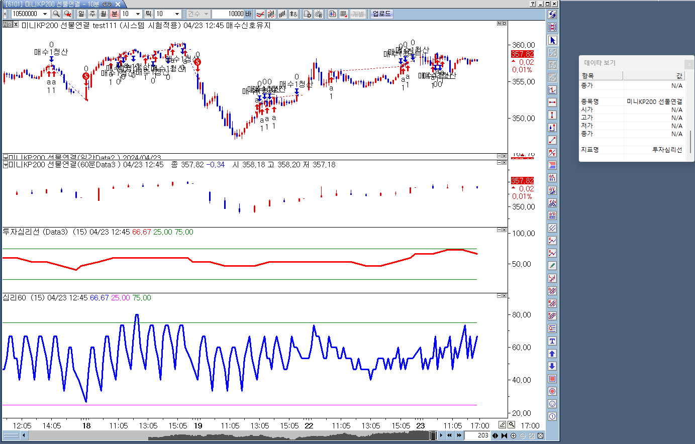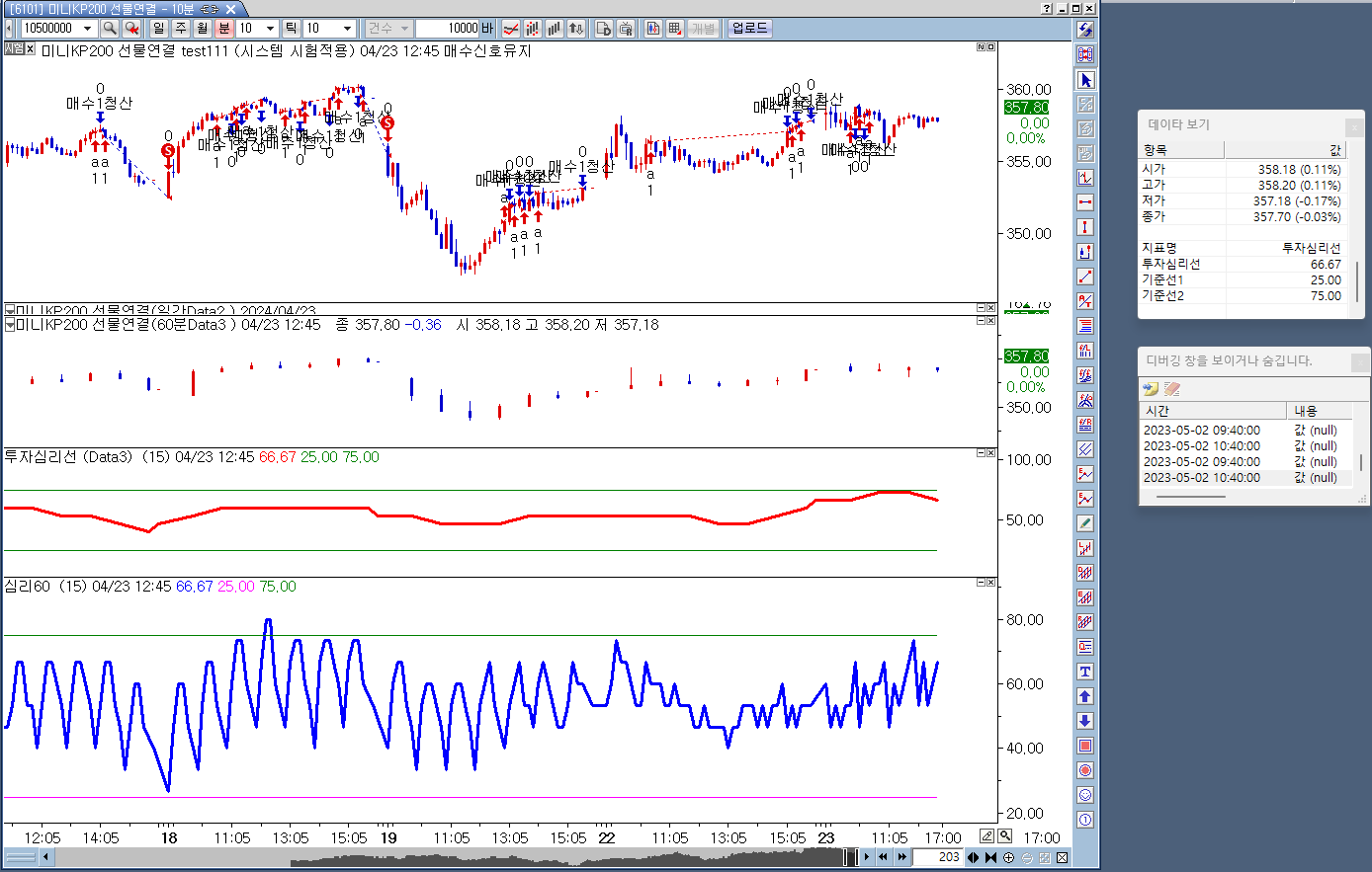 10분봉 차트 시스템에 60분봉의 투자심리선 값을 적용하려고 하는데