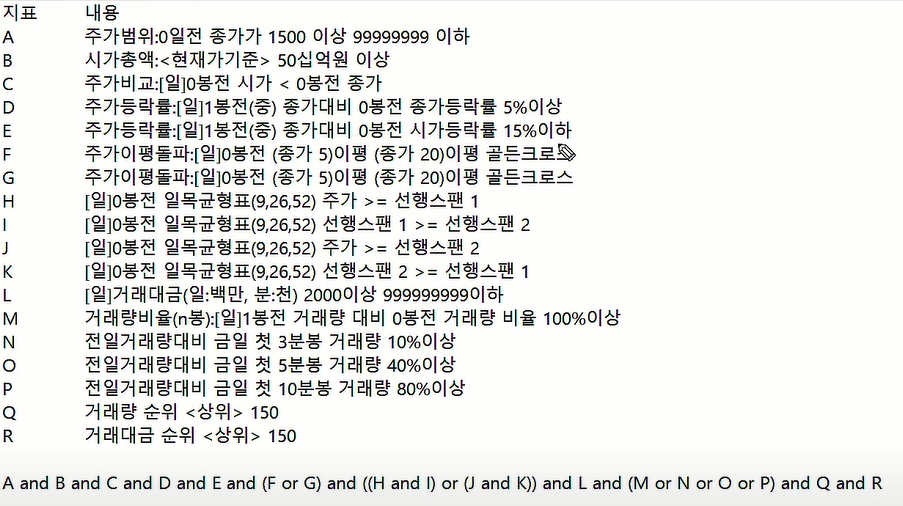 올려주신 내용은 일봉조건 따로 분봉 조건 따로 수식을 만들어서
