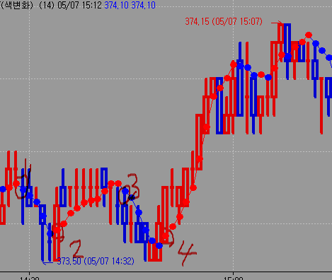 색깔 바뀌는 부분만 점이 긁게 나오게 할수 없나요?