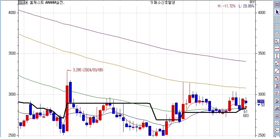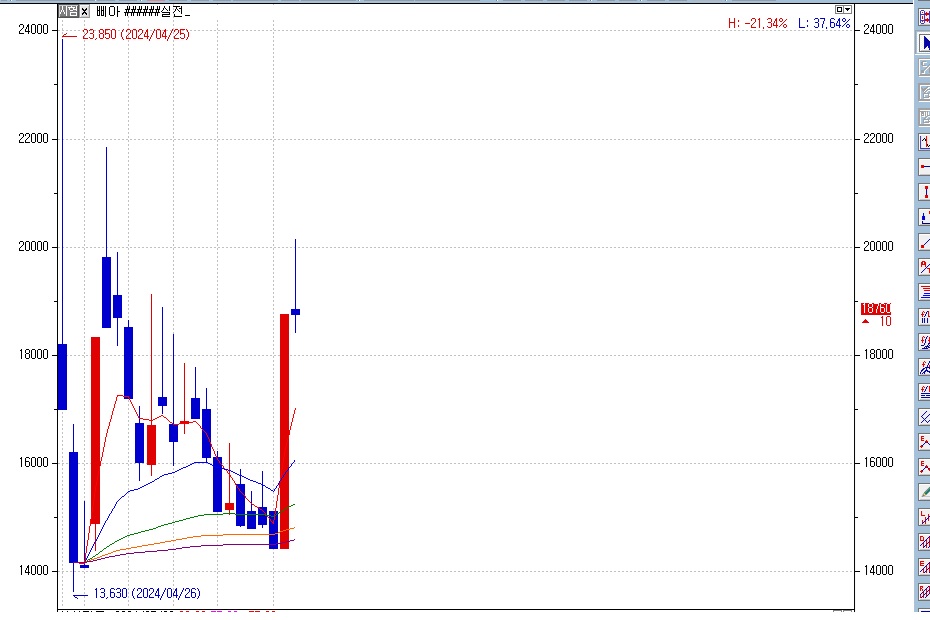 삐아 종목의 차트에서 설정창을 열어