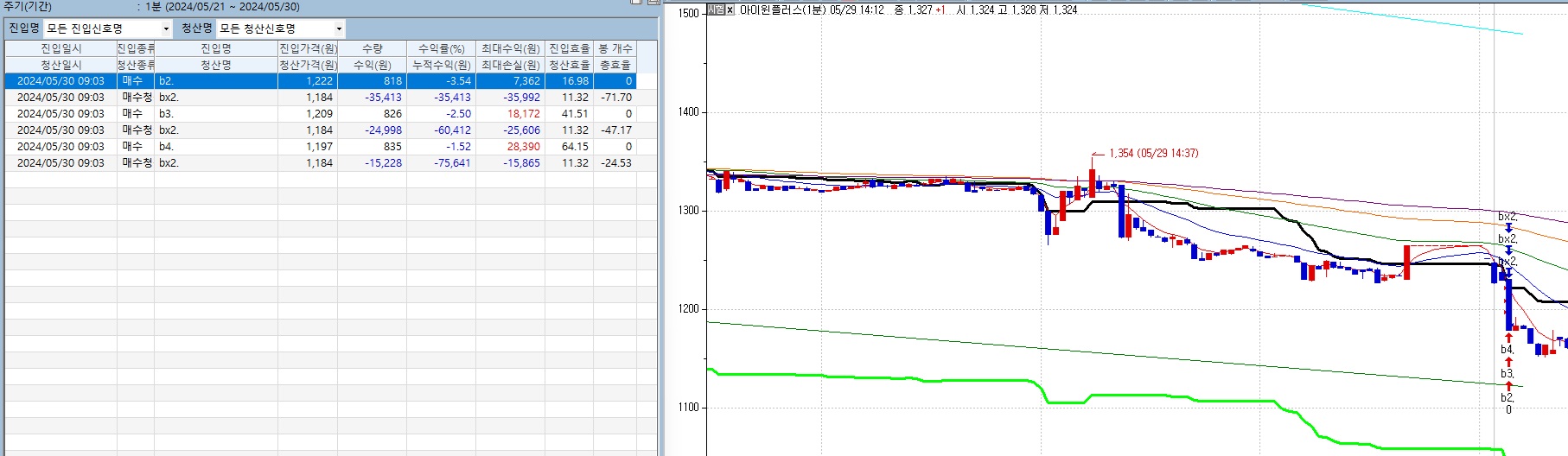 sdate>=20240530으로 변경하고 1분봉에 적용한 결과