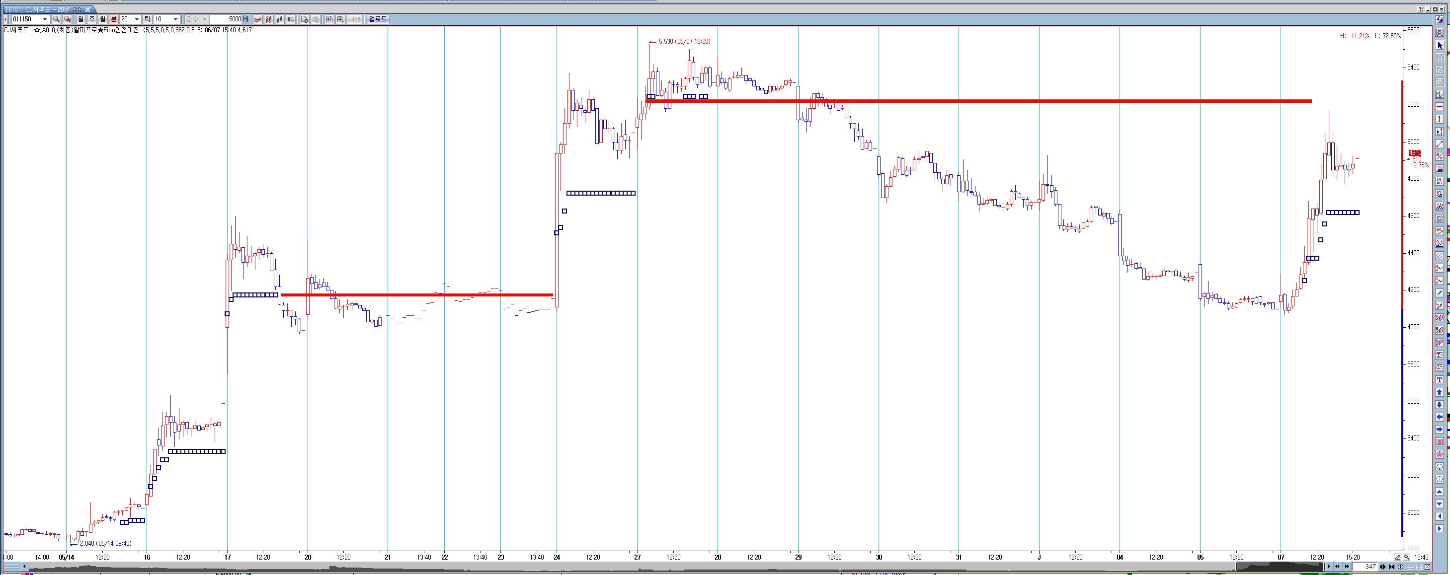 분봉에서 아래 지표를 그리면 그림1처럼 표시되는데