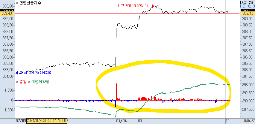 선물옵션 미결제약정 증감을 어떻게 수식으로 표시해야 하나요?
