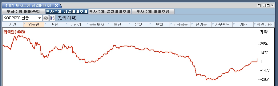 외국인 KOSPI 200선물 실시간 매매동향을 1분봉에서 오실레이터 보조지표로 표현할 수 있는 수식부탁드립니다.