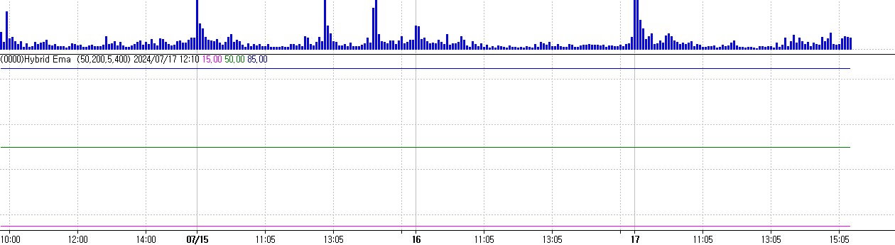 > Hybrid EMA 관련해서 87292로 답변을 주셨고,해당 지표 생성시에는 문제 없다고 나오는데 시물레이션 차트를 띄우고 지표를 추가 적용을 해보니 첨부와 같이 세줄만 뜨는데 설정이 잘못되었는 확인 부탁드립니다.
