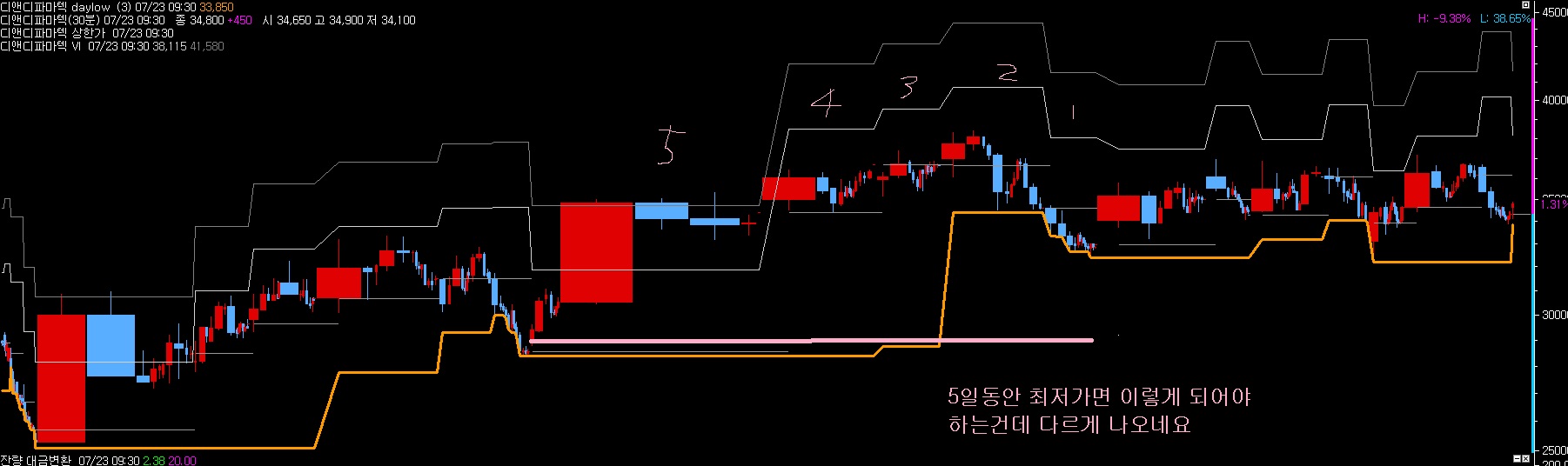 n일간 daylow 를 분봉에서 나타내는걸로 알려주셨는데요