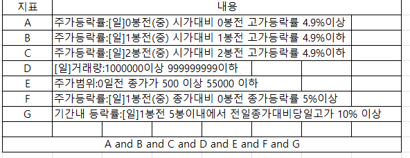 첨부 파일을 확인해보시면 키움에서 작성한 조건검색 입니다...