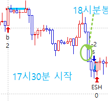 17시에 시작 설정을 하면 18시 분봉에 진입신호가 나옵니다.
