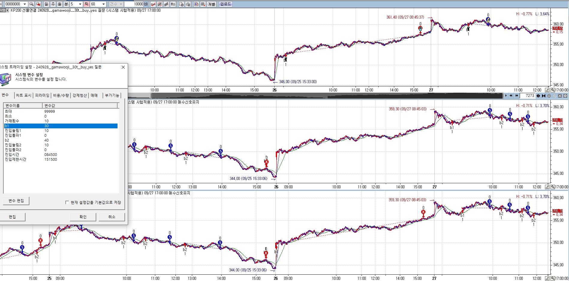 2번 차트 코스피200 미니선물 진입변수 30 10 0