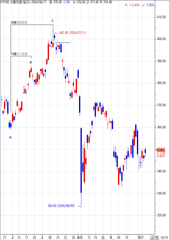 > A바닥에서 B천정까지 14봉 상승