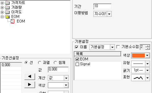 > EOM지표 기간 설정 및 지수이평으로 부탁드립다.