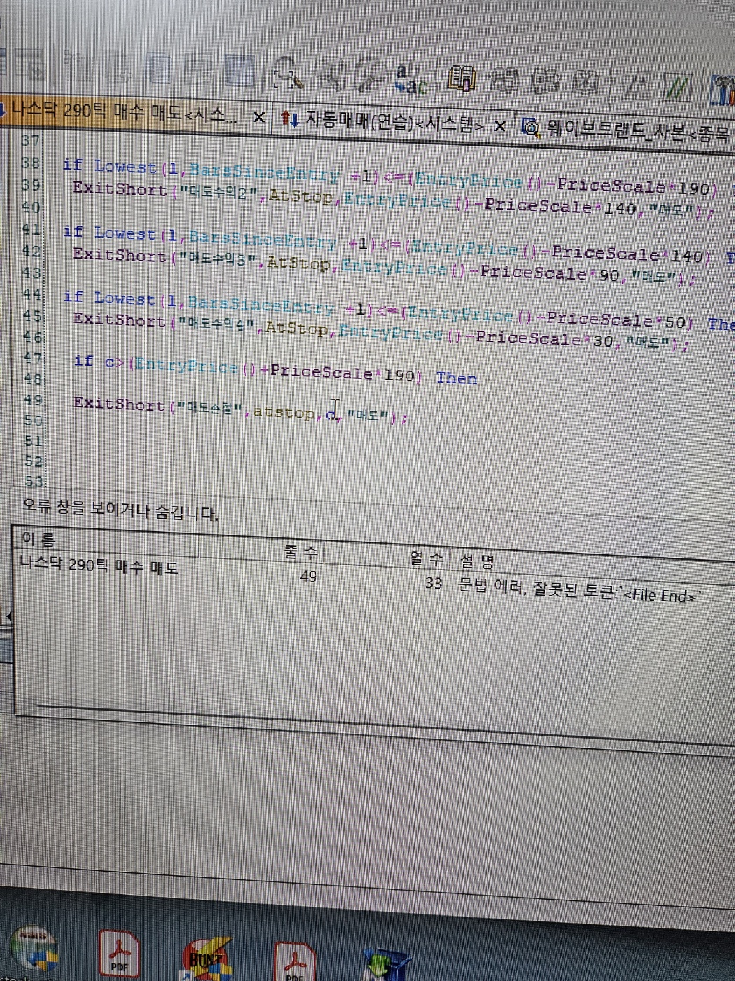 수식작성시 문법에러, 잘못된 토큰 <file end>로