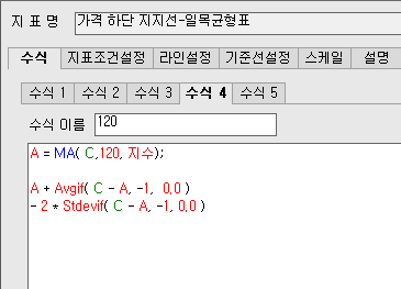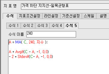 안녕하세요 예스스탁입니다. 키움수식 중에 AvgIf,StdevIf가 사용된 수식은 변환이 가능하지 않습니다. 몇차례 해당 함수 설명만으로 유추해서 작성을 해보았지만 해당 함수가 내부적으로 어떤 계산방법을 사용하는지 알수 없어 키움과 값이 맞지 않아 변환을 못해 드리고 있습니다. 도움을 드리지 못해 죄송합니다. 즐거운 하루되세요 > 중방 님이 쓴 글입니다. > 제목 : 수식 전환 부탁드립니다. > 일목균형표 감사합니다.