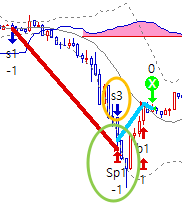2.그림처럼 .위의 a와 b의 조건에 추가로"sp1"청산된 봉에서 매도진입을 하지 않는다.