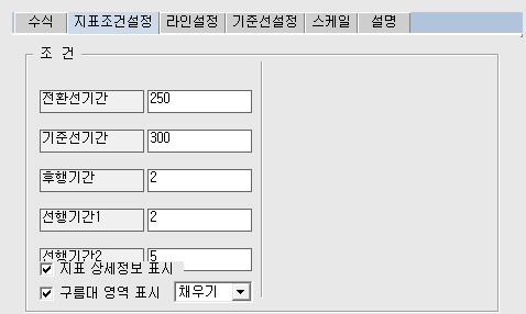 input : 전환선기간(250),기준선기간(300),후행기간(2),선행기간1(2),선행기간2(5);