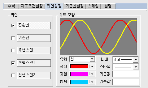 전환선 = (Highest(High, 전환선기간) + Lowest(Low, 전환선기간)) / 2;