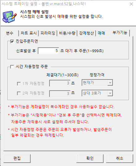 > 시장가로 주문 설정을 하였는데 시세급변으로 주문거부가 나서 체결이 안될 경우 설정창에서 자동정정주문을 설정하면 기존 주문은 취소가 되고 해당되는 초 후에 당시의 상대호가 (상대5호까지 설정가능하던데) 설정한 호가에 주문이 다시 나가는 지 궁금합니다.