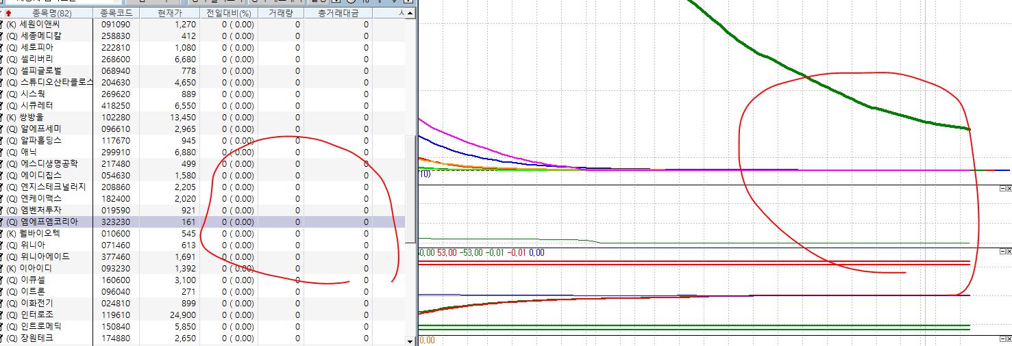 사진처럼 이격도랑 상관없는 종목이 나오고 해당종목을 차트에 띄우면