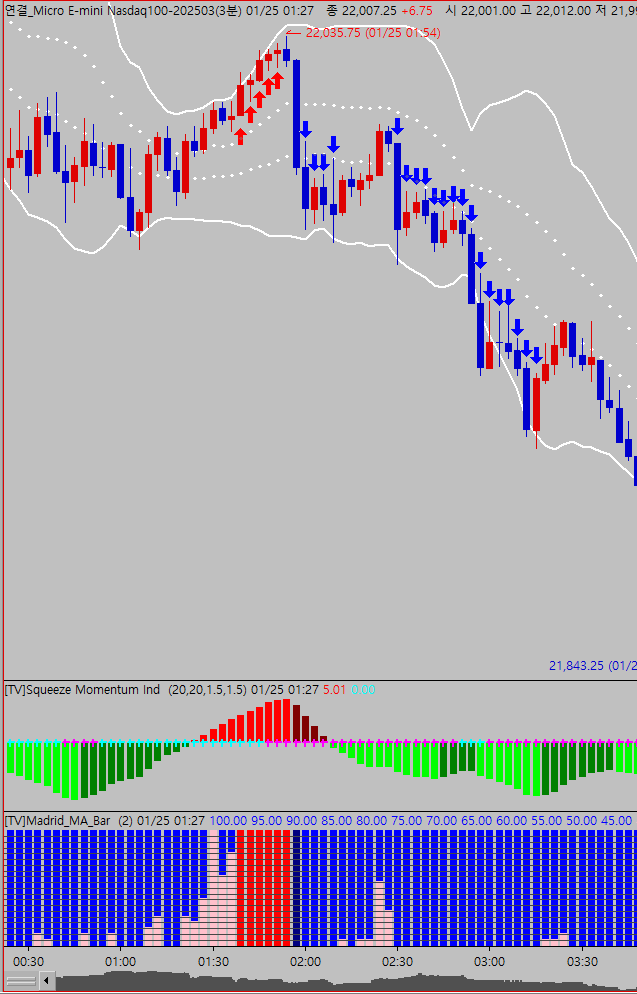 보내주신 시스템 수식을 구현해 본 결과 제가 원하는 바를 구현하지 못하고 있는 것을 발견하였습니다. 그림과 같이 빨간막대가 모두 채워진 구간에서는 매수화살표가 연속적으로, 파란막대가 모두 채워진 구간에서는 매도화살표가 연속적으로 표시되도록 부탁드립니다.