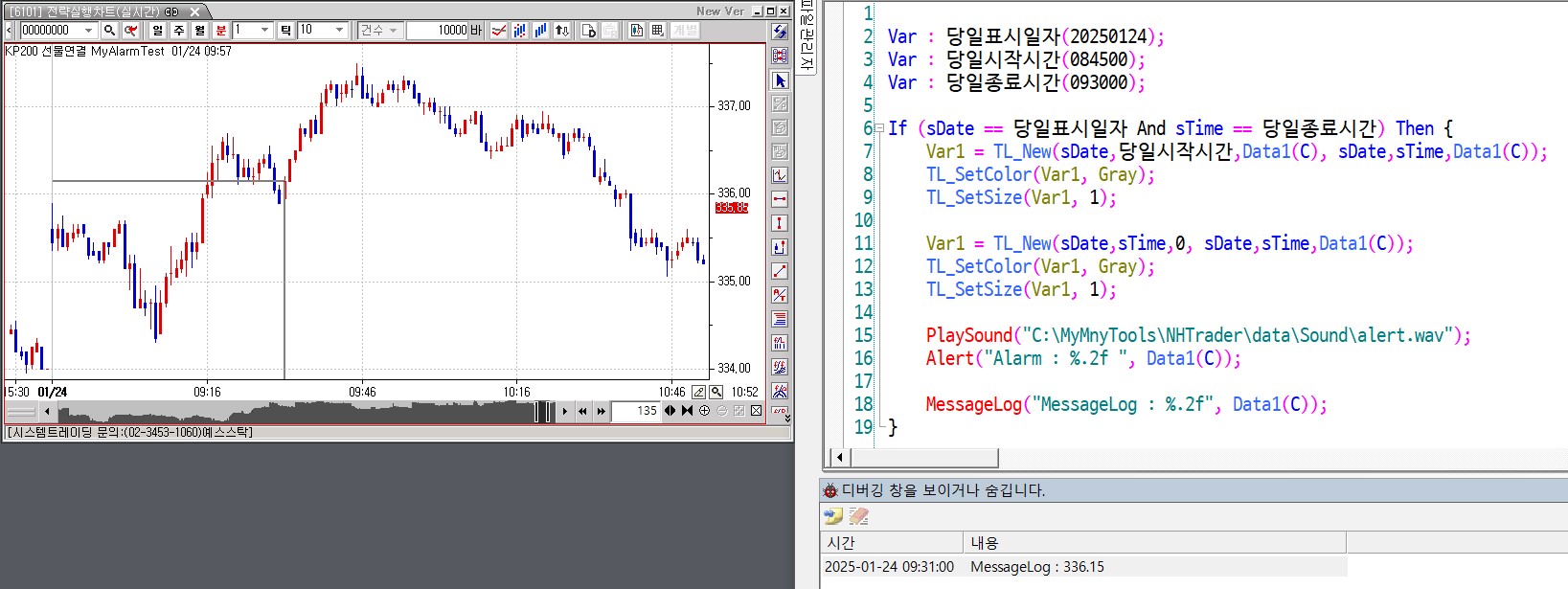 실시간 봉에서만 동직하고 차트 과거봉에서는 동작하지 않습니다.