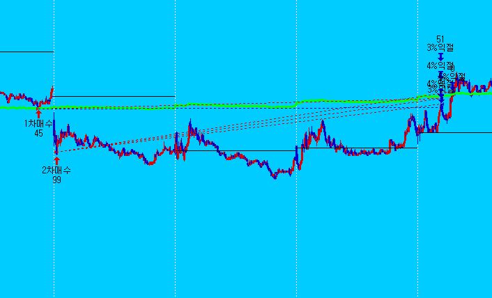 그림 파일1을 보시면 14일선 아래에 있다가 갭하락으로 시가가 시작했을때 매수가 되었습니다.