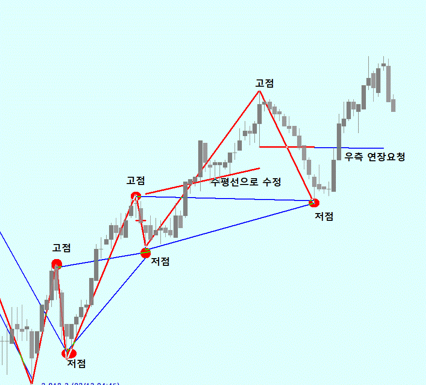 3. 마지막 지그재그선 완성후 마지막 고저점 에서 연결선(c[1]) 좀 부탁 드립니다.