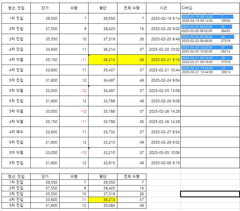이후 0221 10:45에 4차 매수가 다시 발생했지만
