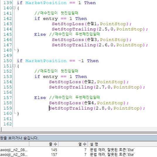 청산수식에 트레일링스탑을 추가했더니 첨부파일처럼 오류가 발생합니다.
